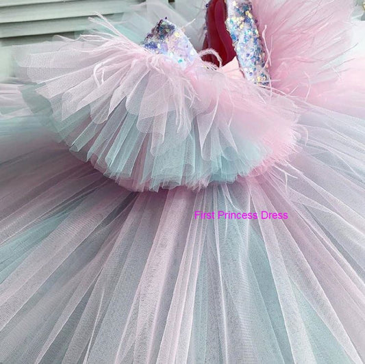 Multicolour Rainbow Unicorn Mermaid Styled Birthday Party Dress